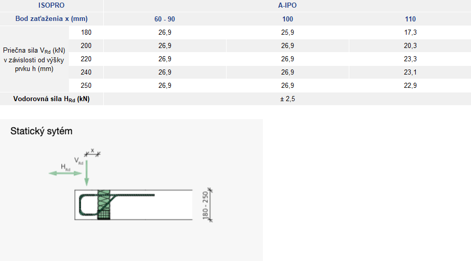 Tepelno-izolačný prvok ISOPRO typ A-IPO sa používa na spojenie železobetónovej konzoly s doskou podlažia, používa sa bodovo, vyrobený v nerezovej ocele, dodanie možné aj v protipožiarnej úprave. Prvky s výškou od 180 mm sa tepelne odizolujú.